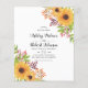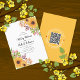 Budget Yellow sunflowers and fall leaves autumn wedding invitation with QR code to RSVP. This lovely design showcases a bouquet of sunflowers and fall leave and berries on the upper right and botton left corners. The back is of solid yellow colour with the QR code.