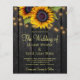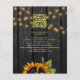 Rustic country wedding celebration and reception stylish all in one BUDGET invitation template with qr code to website on dark brown barn wood background featuring big yellow gold sunflowers bouquets, strings of twinkle lights and a faux gold typography script. +++++++++++++++ Easy to personalize with your details and automatically generated QR CODE for details and to rsvp online! ++++++++++++ The invitation is suitable for outdoor garden backyard rustic country barn weddings. +++++++++++++++++++++++++++++++++ PLEASE READ THIS BEFORE PURCHASING! This is a budget affordable card printed on a FLYER. ++++ Please note that BUDGET PAPER IS THIN - You can upgrade to have this card printed on cardstock ++++ ENVELOPES NOT INCLUDED. +++ Double-check all the information and spelling of your text because you will receive exactly what you see - no one else will check anything before printing. ++++ This card is designed for size 4.5" x 5.6". In the case you choose another size of the card and text goes outside page, everything needs to be fixed before adding the product to cart. Please ask Live Design Service for help.