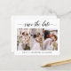 Budget QR Code - Modern and Elegant Landscape Horizontal Three (3) Photo Save the Date Wedding Magnet with hand lettered script typography. The save the date invitation magnet includes script typography and chic and simple design that you can add your customized engagement photograph picture to.