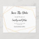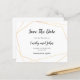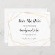 QR Code Simple Gold Geometric Save The Date. A budget price SMALLER 4.5” x 5.6” alternative. Available in a SEMI-GLOSS 110 lb CARD STOCK which is the default option (thicker for invitations), OR a SATIN FINISH 80 lb THINNER PAPER STOCK (ideal for enclosures). Add your QR code to your wedding website on the back by replacing the QR code on the sample. This elegant design has a simple gold geometric frame with black text. Text is easily personalised and the background and text colours can be changed if you so wish