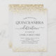 Budget Gold and White Faux Glitter Sparkle Girly Quinceanera Celebration Party Invitations include beautiful and elegant script typography for the special 15th birthday celebration.