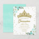 Elegant gold tiara teal floral affordable quinceanera party 4.5”x5.6” invitations. PLEASE NOTE: The envelopes are NOT INCLUDE; matching A7 envelopes are available to be purchase separately.
