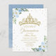 Elegant gold tiara light blue floral affordable quinceanera party 4.5”x5.6” invitations. PLEASE NOTE: The envelopes are NOT INCLUDE; matching A7 envelopes are available to be purchase separately.