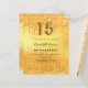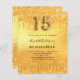 A modern, stylish and glamourous invitation for a Quinceañera, 15th birthday party. A faux gold metallic looking background with faux glitter drips, paint dripping look. The name is written with a modern hand lettered style script. Personalize and add your party details. Number 15 is written with a balloon style font, script.