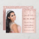 On front: Add a vertical size photo. An elegant rose gold, blush gradient background color, decorated with faux glitter drips, paint dripping look. Personalize and add a name and details.