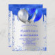 A girly and feminine Quinceañera, 15th birthday party invitation. On front: A faux silver background. Decorated with royal blue faux glitter drips, paint dripping look and balloons. Personalize and add a name and party details. The name is written with a hand lettered style script.