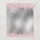 A modern, stylish and glamourous invitation for a Quinceañera, 15th birthday party. A faux silver metallic looking background with an elegant pink faux glitter drip, paint dripping look. The name is written with a black modern hand lettered style script. Personalize and add a name, age and party details.