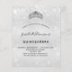 For an elegant Quinceañera 15th birthday. A faux silver metallic looking background. Decorated with faux glitter dust and a tiara, crown. Personalize and add a name, and party details. The name is written with a hand lettered style script
