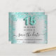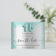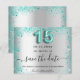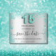 A girly and trendy Save the Date card for a Quinceañera, 15th birthday party. A faux silver looking background decorated with teal, green faux glitter dust. Personalize and add a date and name/age. The text: Save the Date is written with a large trendy hand lettered style script. Number 15 with a balloon style font.