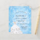 For an elegant Quinceañera, 15th birthday. A blue snowflake background. Decorated with a white dress for a winter wonderland themed party. Personalize and add a name, age and party details. The name is written with a hand lettered style script