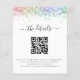 A value for money BUDGET alternative on a size 4.5 x 5.6” semi-gloss 110lbs weight, which is of similar thickness to a postcard (however is not suitable to use as a postcard.). PLEASE NOTE there is ONE invite per sheet. Budget Rainbow Glitter QR Code Wedding Details. A multicolor faux glitter border at the top on both sides with an elegant script with swashes for the header. Swap in your QR code to your wedding website for a convenient way for your guests to see all the details they need. To create a QR code, search online "generate a QR code"
