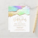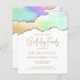This trendy, feminine budget birthday party invitation is ideal for teen girls or women of any age. The design features a watercolor image of an agate geode in rainbow pastel shades of green, blue, purple, orange and yellow, trimmed with faux gold glitter highlights. The words "Birthday Party" appear in faux gold glitter in decorative modern handwriting font. Customize the invitation with the name of the guest of honour in gold art deco font and the party details in gold sans serif type on a white background. The same pastel agate image appears on the reverse side. Shop our collection for matching party supplies, including personalized decorations, favours, tableware, food and more. This agate design is also available in other card sizes/prices, specific birthday milestone years, other events (such as baby shower or bridal shower) and colour choices.