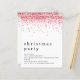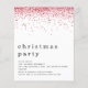 Red Glitter Confetti Christmas Party Invite. A budget price SMALLER 4.5” x 5.6” alternative. Available in a SEMI GLOSS 110 lb CARD STOCK which is the default option (recommended for invitations), OR a SATIN FINISH 80 lb THINNER PAPER STOCK (ideal for enclosures). Envelopes are an optional extra and are slightly larger than the card size. The header is large in stylish lowercase with the details beneath. Lots of white space for a contemporary feel and a border of confetti style red glitter at the top on both sides. Easily personalise the text to your own details.