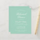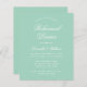 A simple rehearsal dinner invitation. It has just white text on mint green background. The words "Rehearsal Dinner" and the name are written in an elegant calligraphic script.