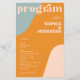 Abstract shapes retro vintage 70s style unique cheap budget affordable groovy wedding program template FLYER (advertising type of paper) with bold typography in a trendy modern pastel dusty blue, pink and orange chic spring summer color palette. +++++++ Please note that all the colors are changeable. ++++++++++++ Suitable for casual informal stylish contemporary weddings. +++++++++++++++++++++++ PLEASE READ THIS BEFORE PURCHASING! This is a cheap budget wedding card printed on a FLYER (advertising type of paper suitable for folded mailings). ++++ Please note that BUDGET PAPER IS THIN - You can upgrade to have this card printed on cardstock ++++ ENVELOPES NOT INCLUDED. +++ Double-check all the information and spelling of your text because you will receive exactly what you see - no one else will check anything before printing.