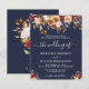 Budget romantic fall floral navy blue wedding invitations. Customize names, dates, and information.