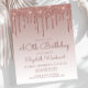 This trendy 40th birthday invitation features a sparkly rose gold faux glitter drip border and ombre background. The words "40th Birthday" and the name of the guest of honour appear in dark rose casual handwriting script, with the rest of the customizable text in sans serif font. The same rose gold glitter drip design appears on the reverse side.