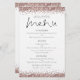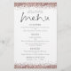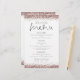 Budget Rose Gold Glitter Script Wedding Menu. A budget price size 5.5” x 8.5”, on an elegant 110 lb LINEN stock – for a luxury feel at great value, this is perfect for menus, as well as invitations and programs etc. This budget size alternative is also available in other paper choices. The SEMI-GLOSS 110 lb card stock is about the same thickness as a postcard, so also works well for invitations. The FELT 100 lbs paper is buff coloured, NOT white, so adds a rustic touch. The MATTE 80lbs paper stock is bright white, for crisp printing, great for your menus and programs, whilst the SATIN 80lbs paper is thin and light, ideal for enclosures. PLEASE NOTE THE OPTIONAL ENVELOPES ARE A LITTLE BIGGER IN SIZE AT 6.75” x 9” approx. A stylish set script for the header Menu and faux glitter borders in rose gold. Easily personalise the rest of the text to your own details which includes alternatives for your vegan or vegetarian options.