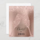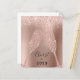 Sur un arrière - plan métallique à feuille d'or rose bordé de parties scintillant, deux verres à champagne mousseux toast la nouvelle année avec "Cheers to 2022". Nous avons inclus un exemple de texte - y compris un accueil chaleureux - au dos de la carte que vous pouvez facilement changer à vos propres mots en utilisant le menu déroulant Personnalisation. Vous avez également la possibilité d'"informatiser" votre signature en révisant l'exemple de texte de script... ou de supprimer notre exemple de texte pour écrire à la main vos propres signatures.