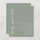 Budget Rotated Script Sage Baby Shower Sprinkle. A budget price smaller 4.5 x 5.6” alternative on a 110gsm similar in thickness to a postcard. There is ONE per sheet. Contemporary style with Baby Sprinkle rotated and to the left hand side and easily personalise the rest of the text to your own details. You can change text and background colours if you so wish via the edit further option.
