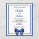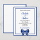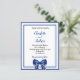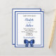 A modern, elegant and wedding invitation. A white background decorated with royal blue frames and bow. Personalize and add your names and wedding details. Black and royal blue coloured letters.