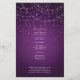 Budget Royal Purple String Lights Wedding Program. A budget price larger size in a variety of paper choices for your wedding menus. Gradient damask background with beautiful string lights. Easily personalize the rest of the text. The font colours can be changed via the edit menu.