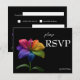 A clean, modern RSVP card from the Technicolor Love collection, designed in a sleek horizontal layout for effortless clarity. The vibrant rainbow lily adds a signature pop of colour along one edge, tying it perfectly into the rest of your suite while keeping the overall look minimal and elegant.