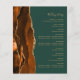 The left-hand edge of this elegant modern wedding program features a burnt orange and rust watercolor agate border trimmed with faux gold glitter. The customizable text combines gold-coloured handwriting and copperplate fonts on a dark green background.