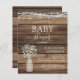 Budget Baby Shower - Rustic Farmhouse String Lights and Baby's Breath in a Jar Invitations on Wood background - includes beautiful and elegant script typography with modern Country Farm House Sparkle for the special Mother to Be celebration.