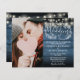Featuring pretty string lights and a hand-drawn floral garland, this elegant budget rustic kraft wedding invitation can be personalized with your special photo and information set in chic lettering on a blue wood panels background. Designed by Thisisnotme©