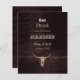 Budget rustic brown texture print bull skull. Country western cowboy eat drink married fun wood design wedding announcement. Use a little humour with these cute, funny farmhouse style invitations. Eat, Drink, cause we're gettin' Married can be personalized. Trendy, old wild west vintage antique style. Cool farm animal. Customize script and typography. Image copyright Marg Seregelyi Photography.
