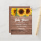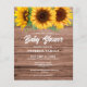 The invitation showcases a lovely wooden background, evoking the cozy and welcoming feel of autumn. The bright sunflowers add a cheerful touch, making this invitation perfect for a fall baby shower.