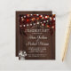 Rustic country strings of twinkle lights budget affordable engagement party invitation with a mason jar with white baby breath flowers and rust autumn leaves on a maroon brown barn wood background. +++++++++ Ideal for your autumn fall elegant outdoor backyard parties or barbecues. ++++++++++ PLEASE READ THIS BEFORE PURCHASING! This is a budget affordable wedding card printed on a paper sheet (each sheet has one card). ++++ For the best rapport price-quality, our advice is to choose the Semi-Gloss paper type (it is thick enough to be used for stationery) ++++ If you need envelopes, choose the ENVELOPE OPTION. +++ Double-check all the information and spelling of your text because you will receive exactly what you see - no one else will check anything before printing. ++++ This card is designed for size 4.5" x 5.6". In the case you choose another size of the card and text goes outside page, everything needs to be fixed before adding the product to cart. Please ask Live Design Service for help.