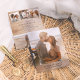 Budget, rustic and modern wedding invitation design features a large vertical photo on the front above your names in lowercase serif italics with an elegant ampersand and your wedding date against a beige farmhouse wood slats image. Cards reverse to three square photos at the top, classic wedding typography in the middle, and a horizontal photo at the bottom on the same wood. Minimalist wood wedding with 5 photo grid collage. For our template photos, we chose a neutral earthy colour scheme of pale blue, white, and beige, but this versatile design was made with customization in mind and is sure to look good with any colour combination. Click on "Personalize this template" to change the text and upload your own photos. If you want to edit fonts, placement, or colours, simply scroll to "Click to customize further" and use the Zazzle design tool. As part of the budget selection on Zazzle, this sheet isn't a standard invite size or paper quality. If you want this design on an invitation card you can find it in our store or use the Zazzle Make Machine to transfer it onto the product of your choice. Feel free to contact me through the button below for any design-related questions. Visit our store for more invitations!