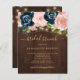 Rustic country chic affordable bridal shower brunch party stylish invitation template on a dark brown barn wood background featuring a blush pink and navy peony roses floral border and a trendy elegant handwriting faux gold typography script.++++++++++++++ Easy to personalize with your details! +++++++++++ The invitation is suitable for a rustic country outdoor garden backyard bridal shower, brunch, or luncheon party. ++++++++++ PLEASE READ THIS BEFORE PURCHASING! This is a budget affordable wedding card printed on a paper sheet (each sheet has one card). ++++ For the best rapport price-quality, our advice is to choose the Semi-Gloss paper type (it is thick enough to be used for stationery) ++++ If you need envelopes, choose the ENVELOPE OPTION. +++ Double-check all the information and spelling of your text because you will receive exactly what you see - no one else will check anything before printing. ++++ This card is designed for size 4.5" x 5.6". In the case you choose another size of the card and text goes outside page, everything needs to be fixed before adding the product to cart. Please ask Live Design Service for help.