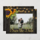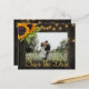 Yellow orange sunflowers and strings of twinkle lights on dark brown elegant barn wood custom photo save the date BUDGET affordable wedding postcard. +++++++++ Easy to personalize with your names and text! ++++++++++ Suitable for floral summer or autumn fall / garden backyard rustic country or farmhouse themed weddings. ++++++++++++++++++++++ PLEASE READ THIS BEFORE PURCHASING! This is a budget affordable wedding card printed on a paper sheet (each sheet has one card). ++++ For the best rapport price quality, our advice is to choose the Semi-Gloss paper type (it is thick enough to be used for stationery) ++++ If you need envelopes, choose the ENVELOPE OPTION. +++ Double-check all the information and spelling of your text because you will receive exactly what you see - no one else will check anything before printing. ++++ This card is designed for size 4.5" x 5.6". In the case you choose another size of the card and text goes outside page, everything needs to be fixed before adding the product to cart. Please ask Live Design Service for help.