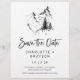 Budget Rustic Wilderness Save the Date Invitation features a hand illustrated majestic mountain and evergreen pine trees with hand lettered script typography. Save the Date is part of a collection.