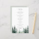 Style rustique moderne élégant typographie nature tendance sauge vert pins destination budget abordable menu mariage modèle avec un script de calligraphie chic et aquarelle pinède bois.