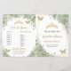Personalize this budget bi-fold sage green floral gold quinceanera program sheet easily and quickly. Simply click the "Edit Using Design Tools" button to modify the text, wording, font style, font size, and font colour. You can also add or remove text, and move or remove images. The butterflies and crown are movable, resizable, duplicatable, and removable, allowing you to customize the design to suit your occasion. Add your padrinos list, order of events, corte de honour / damas and chambelanes list. All text is editable.