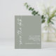 Minimalist Calligraphy QR Code Sage Green Wedding Save the Date. A budget priced smaller 4.5 x 5.6” alternative on 110gsm semi gloss similar in thickness to a postcard. Optional QR code to your wedding website on the back which will be automatically generated when you change the sample url to your own website url or delete sample code if not required. Stylish set calligraphy is rotated to the left hand side, with all the details stylishly to the right with lots of white space for a contemporary feel. Easily personalise with your details. And change the colour of text and background if you wish via the edit further option.