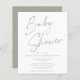BUDGET Sage Olive Green Modern Simple Handwritten Script Baby Shower Invitation featuring our chic handwritten typography and your custom details. Baby showers are all about the mom-to-be and her baby on the way. So treat her to a chic, budget friendly, and handmade invitation with our new Simple Handwritten Script design. Choose a colour & typeface that reflects the couple's style and customize it with your details. Perfect for your modern, boho, rustic, or chic affair. A great addition to your shower, whether it is for a baby girl, a baby boy, or gender neutral. **Our BUDGET paper is smaller and more delicate, but still beautiful!** For a comparison of paper types, please watch our video here: https://youtu.be/G0F9Am5HPD4 If you need assistance or matching items, please contact us at cedarandstring@gmail.com.