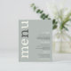 Un rapport qualité-prix BUDGET alternative sur une taille plus petite 4,5 x 5,6" semi-brillant poids 110lbs, qui est d'une épaisseur similaire à une carte postale (cependant ne convient pas à l'utilisation comme carte postale.) VEUILLEZ NOTER qu'il y a UN par feuille. Menu Mariage Texte ivoire Simple Sage. Un design typographique moderne avec Menu en grande typographie en ivoire avec le "n" en gris, tourné et à gauche sur un arrière - plan de vert sauge clair. Les couleurs Arrière - plans et textuelles peuvent être modifiées si vous le souhaitez via Personnaliser.