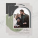 Budget Save the Date Wedding Announcement. Simple geometric shapes in muted desert tones arranged to highlight your photo in a modern arch frame. Trendy script calligraphy accentuates the names in contrast to otherwise crisp minimalist typography. Easily adjust the size and placement of your photo in Advanced Customize Further mode. Coordinated background on reverse side with space for additional information. Other styles and colours available in store.