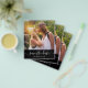 Chic script boho photo save the date flyer with your names, wedding date, location and wedding website in white elegant handwritten script calligraphy and modern typography on a black background. Simply add your personal details and favourite photo! Exclusively designed for you by Happy Dolphin Studio. If you need any help or matching products, please contact us through our store chat. We're happy to help you make your wedding the most beautiful day!