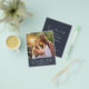 Chic script boho photo save the date flyer with your names, wedding date, location and wedding website in white elegant handwritten script calligraphy and modern typography on a dark blue background. Simply add your personal details and favourite photo! Exclusively designed for you by Happy Dolphin Studio. If you need any help or matching products, please contact us through our store chat. We're happy to help you make your wedding the most beautiful day!