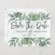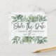 This modern and elegant save the date design has a botanical theme, which includes eucalyptus and foliage in watercolor with with elegant hand written style typography. Easy to customize with your own information.