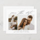 An elegant script 3 photo save the date with horizontal photo and minimal text. Click edit to customize this design.