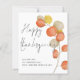 Script Autumn Leaf Happy Thanksgiving Card. A budget price SMALLER 4.5” x 5.6” alternative in a SEMI-GLOSS 110 lb CARD STOCK, similar to the thickness of a postcard. Envelopes are slightly larger than the card size. Artsy modern Watercolor leaves in soft pastel autumn colours are to the right, with trendy handwriting style set typography for Happy Thanksgiving to the left. Easily personalise your names and greeting at the bottom. A coordinating colour is on the back.