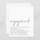 Script Black White Engagement Party Invite. A budget price SMALLER 4.5” x 5.6” alternative. Available in a SEMI GLOSS 110 lb CARD STOCK which is the default option (recommended for invitations, similar to the thickness of a postcard), OR a SATIN FINISH 80 lb THINNER PAPER STOCK (ideal for enclosures). Envelopes are an optional extra and are slightly larger than the card size. The header is in a set handwritten style with the details beneath. Lots of white space at the top for a contemporary feel! Easily personalise with your details.