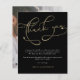 Budget Script Gold Black Photo Engagement Thank You. A budget price SMALLER 4.5” x 5.6” alternative. Available in a SEMI-GLOSS 110 lb CARD STOCK which is the default option (thicker for invitations), OR a SATIN FINISH 80 lb THINNER PAPER STOCK (ideal for enclosures). A modern design to say thanks after your engagement party, with elegant set script in gold with heart swashes for Thank you at the top which can be changed to another colour if you wish via customise further, and the rest of the text you can easily personalise. Choose a photo of you both and replace the sample photo in the template placeholder with it on the back.